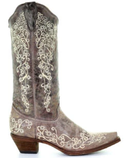 Corral Women’s Crater With Bone Embroidery Western Boots – Snip Toe